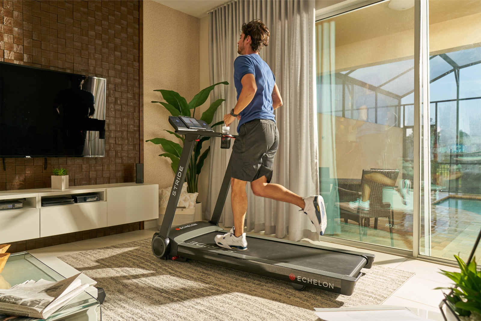 Our patented, auto-folding treadmill is designed for easy storage and convenience. When you're not jogging, running, or sprinting toward your fitness goals, activate the auto-fold feature and watch as the Stride folds to just 10" tall. The built-in device holder secures your smartphone or tablet in place while you access a variety of live and on-demand running classes led by world-class instructors through the Echelon Fit app. Challenge yourself with speeds up to 12mph and 12 incline levels. Tablet Not Included. Membership sold separately.